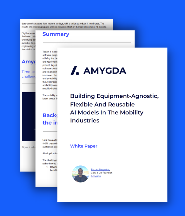 Leverage transfer learning techniques, where pre-trained models on similar equipment or scenarios are fine-tuned for the specific characteristics of the new equipment. Amygda’s domain expertise, coupled with flexible and reusable AI models specifically built in the industry can be applied to airport baggage handling and security systems with minimal fine-tuning.